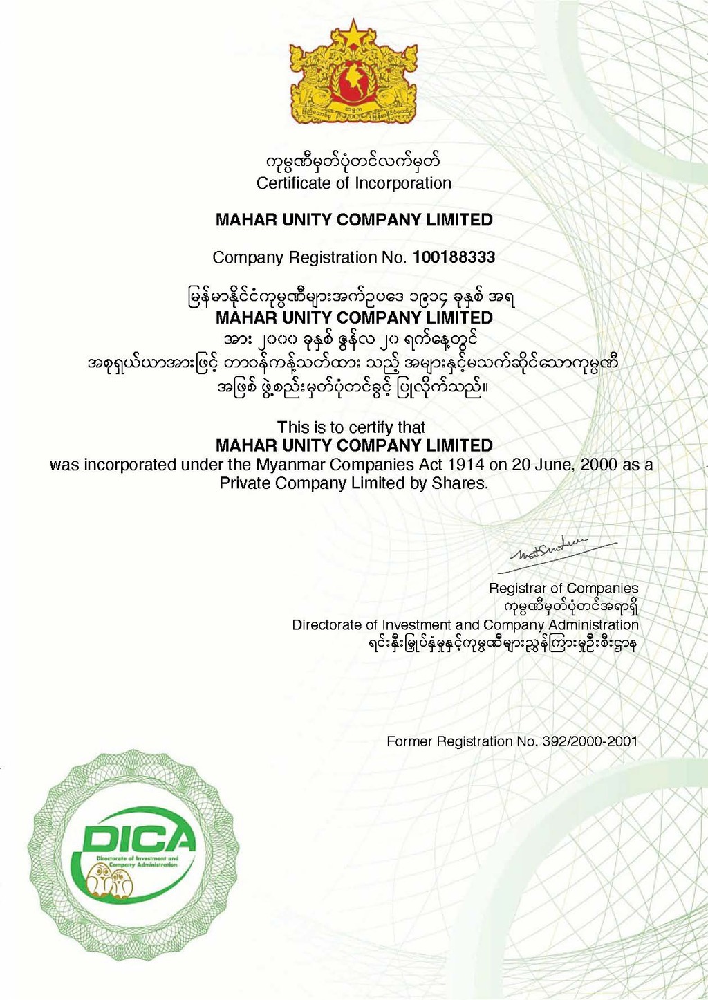 Mahar Unity operates as a fully registered company, demonstrating transparency, accountability, and commitment to lawful and ethical business practices.